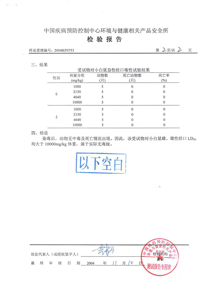 • 中國疾病預防控制中心毒性檢驗報告
